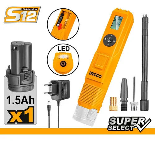 Mini Compresor Inflador A Bateria 12v Ingco Cacli12011 – Smf Color Anaranjado Frecuencia 50/60