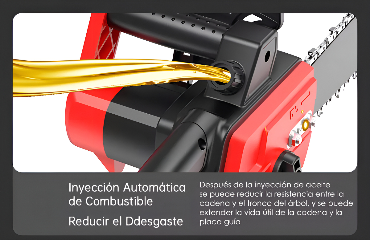 Si la mini motosierra eléctrica deja de funcionar después de un tiempo, el motor tiene una función de protección contra sobrecalentamiento. Desconecta la batería y reinicia para continuar utilizándola.