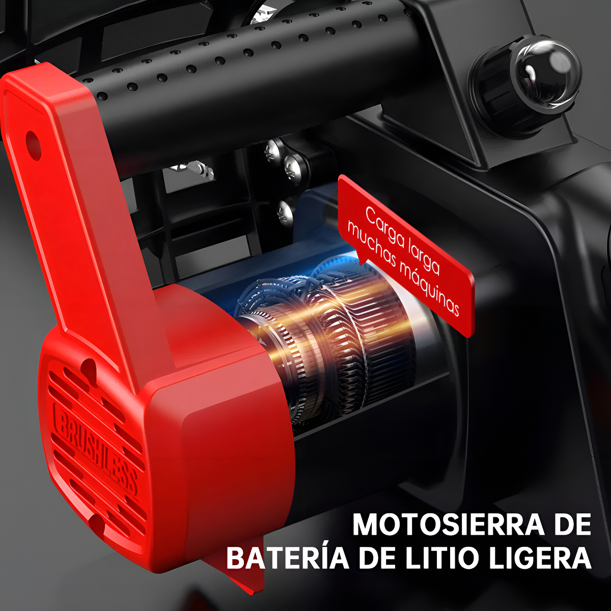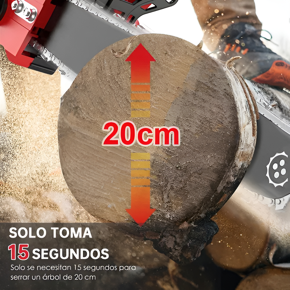 Esta motosierra está equipada con un motor de cobre puro de alta potencia mejorado, proporcionando una experiencia de corte eficiente, capaz de manejar fácilmente diversas tareas de corte, desde ramas pequeñas hasta troncos gruesos.