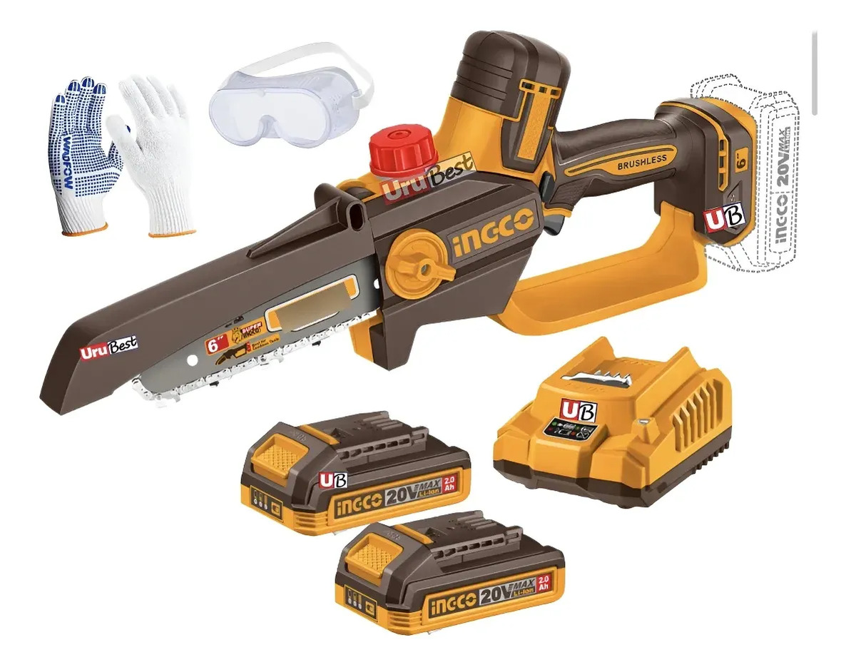 Mini Motosierra 20v 6p Ingco Bl +2 Baterías Y Autolubricante