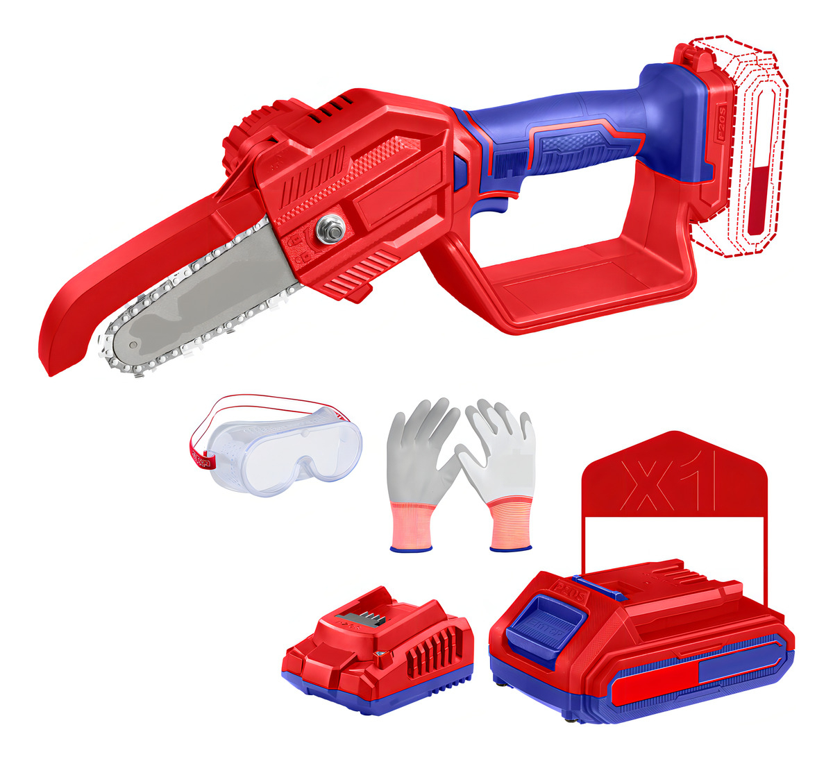 El color rojo vibrante de la motosierra no solo le da un toque moderno, sino que también la hace fácilmente visible en cualquier entorno de trabajo. Ideal para aficionados al bricolaje y jardinería, esta herramienta se adapta a diversas necesidades, desde el cuidado del jardín hasta proyectos de carpintería ligera.