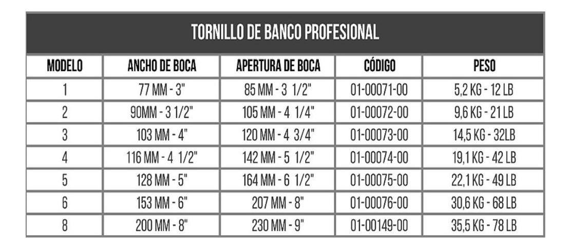 – Ancho de mordaza 116mm