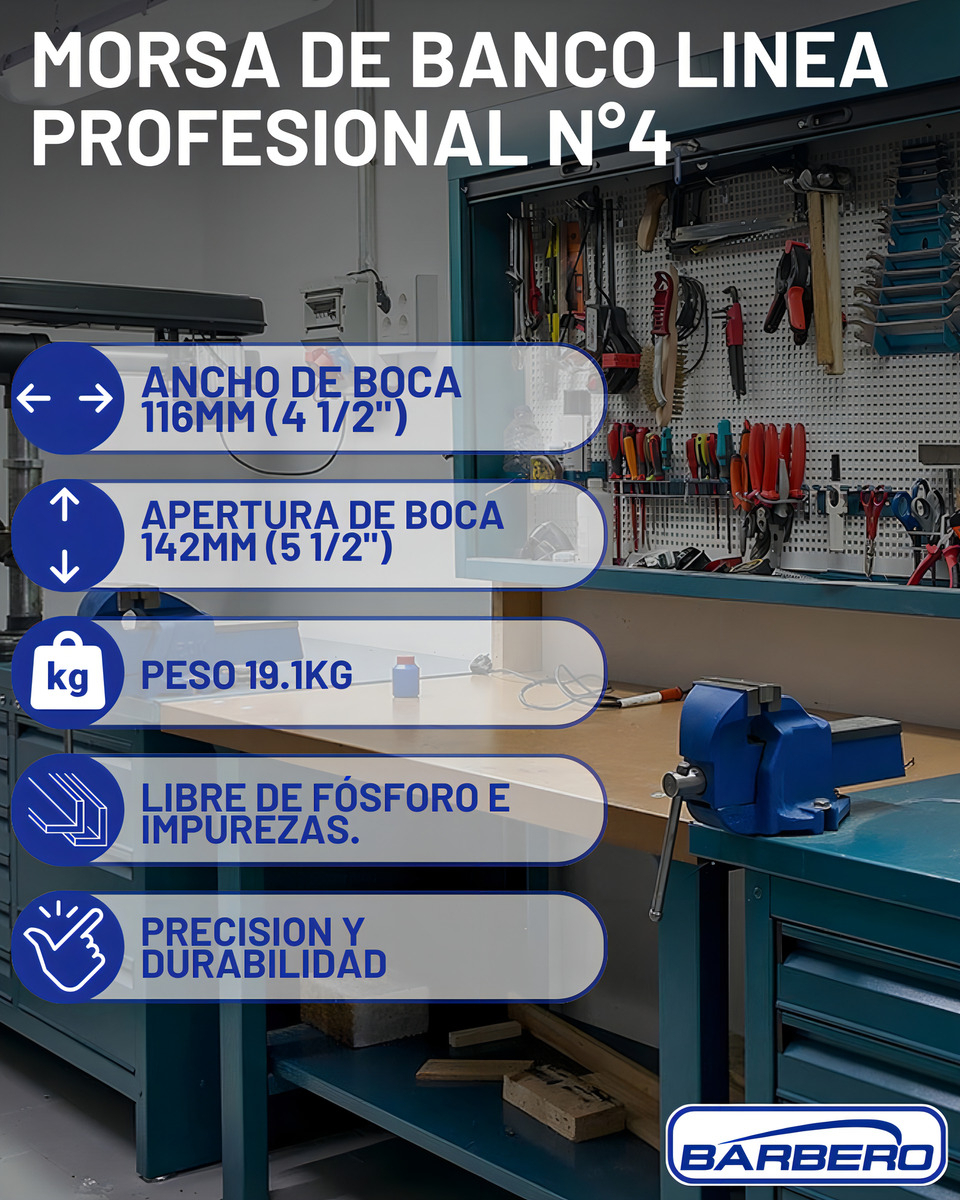 Morsa De Banco Fija Nº4 – Apertura 142mm Barbero