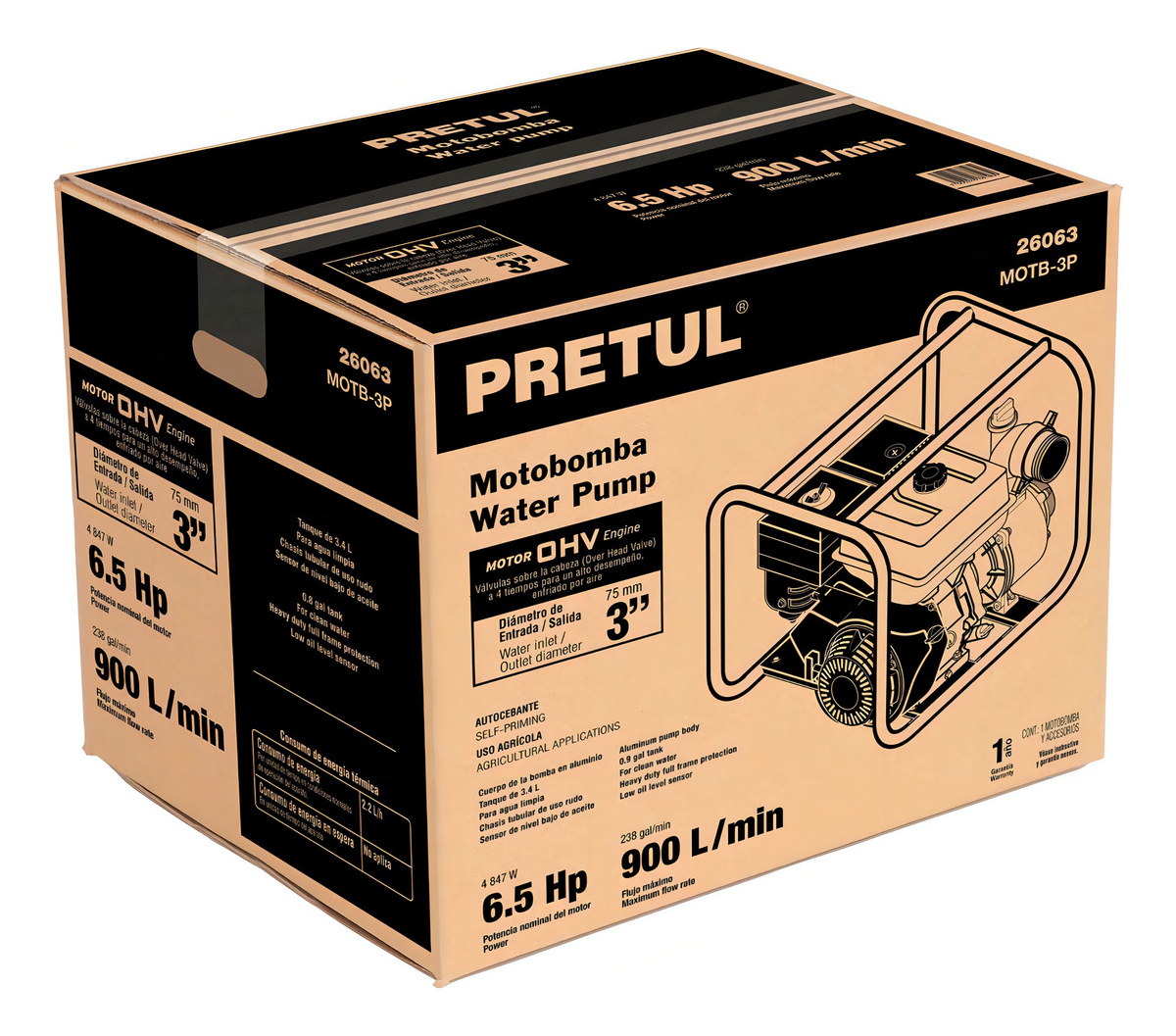 Motobomba Autocebante Gasolina 6.5hp Pozos 3´ Agua 26063