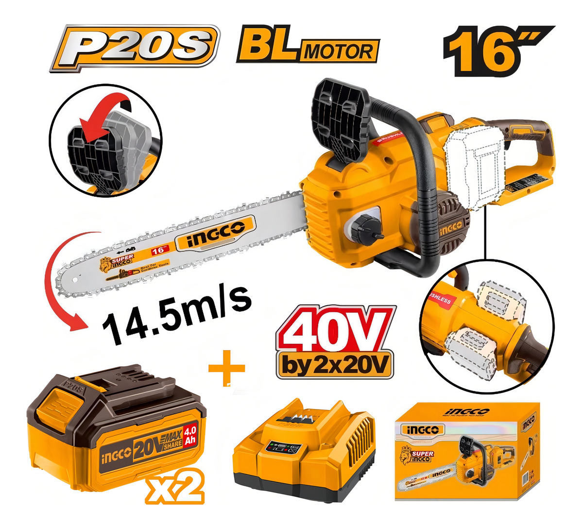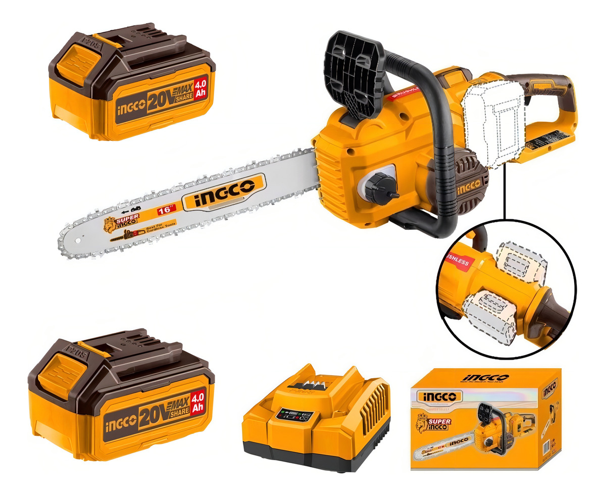 Motosierra 40v 16 Cgsli40168 C/2 Baterias + Carg Ingco Color Amarillo