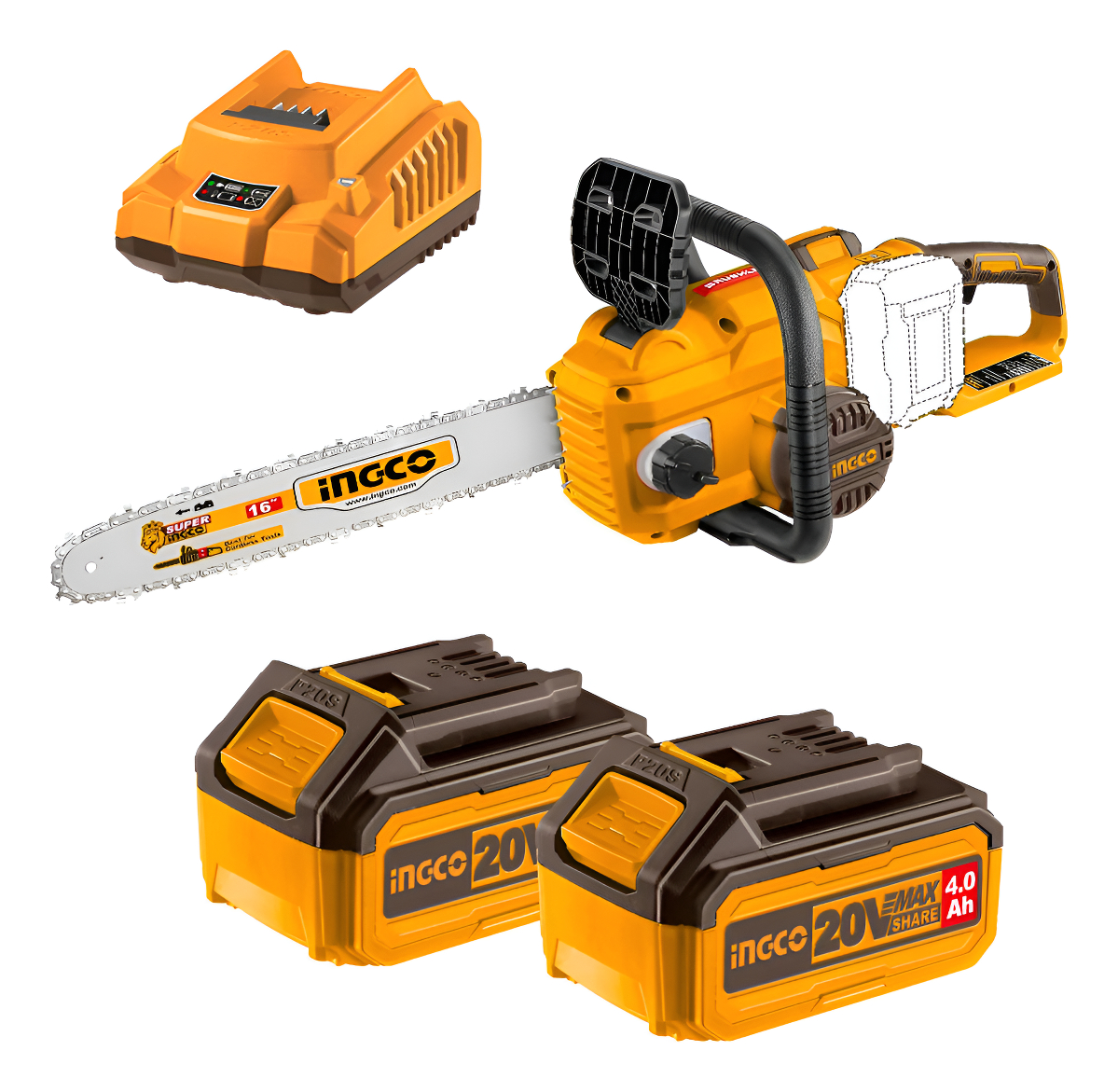 Motosierra 40v Ingco 16» Sin Carbones, 2 Baterías 4.0ah 20v