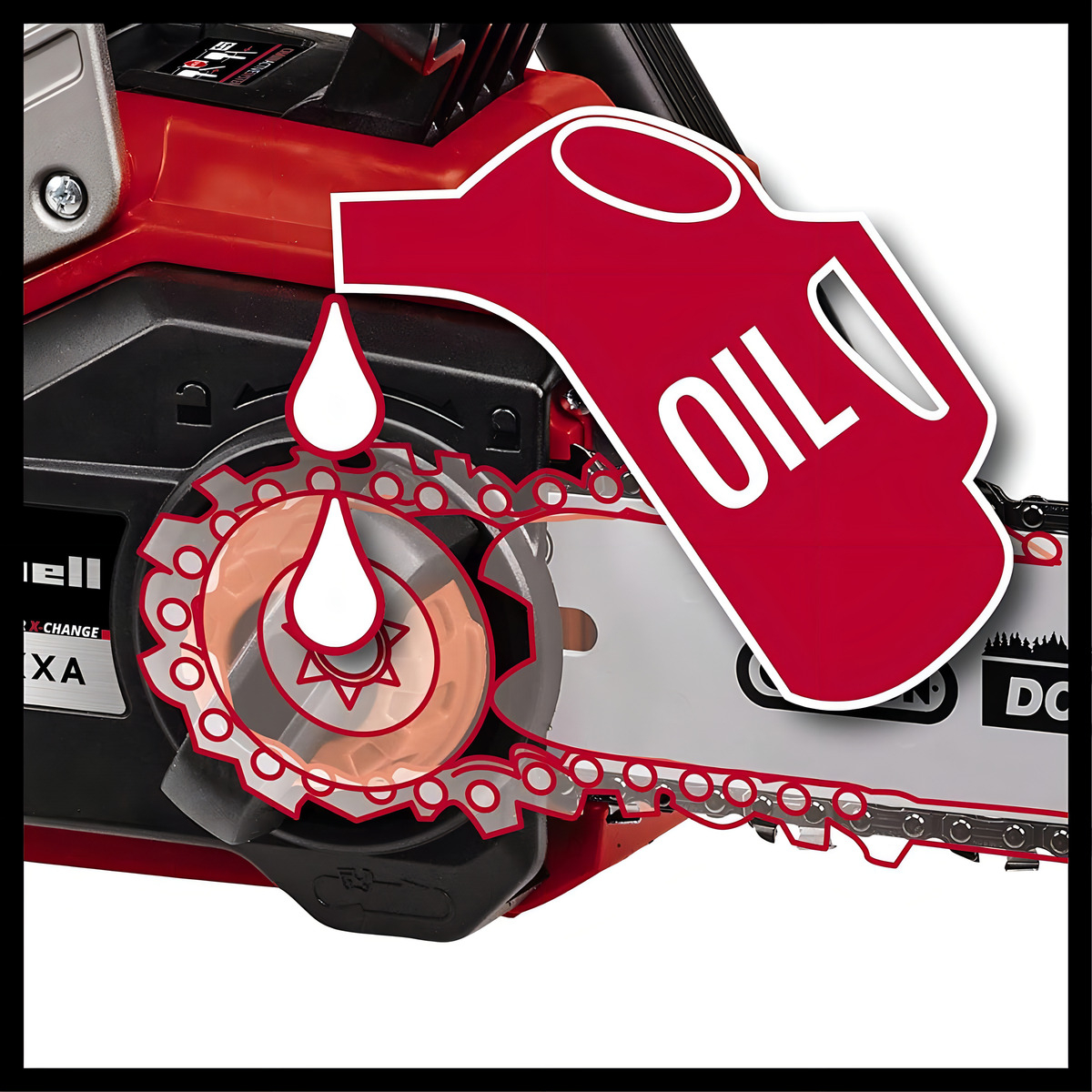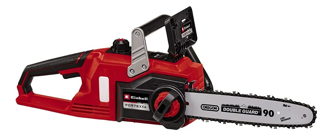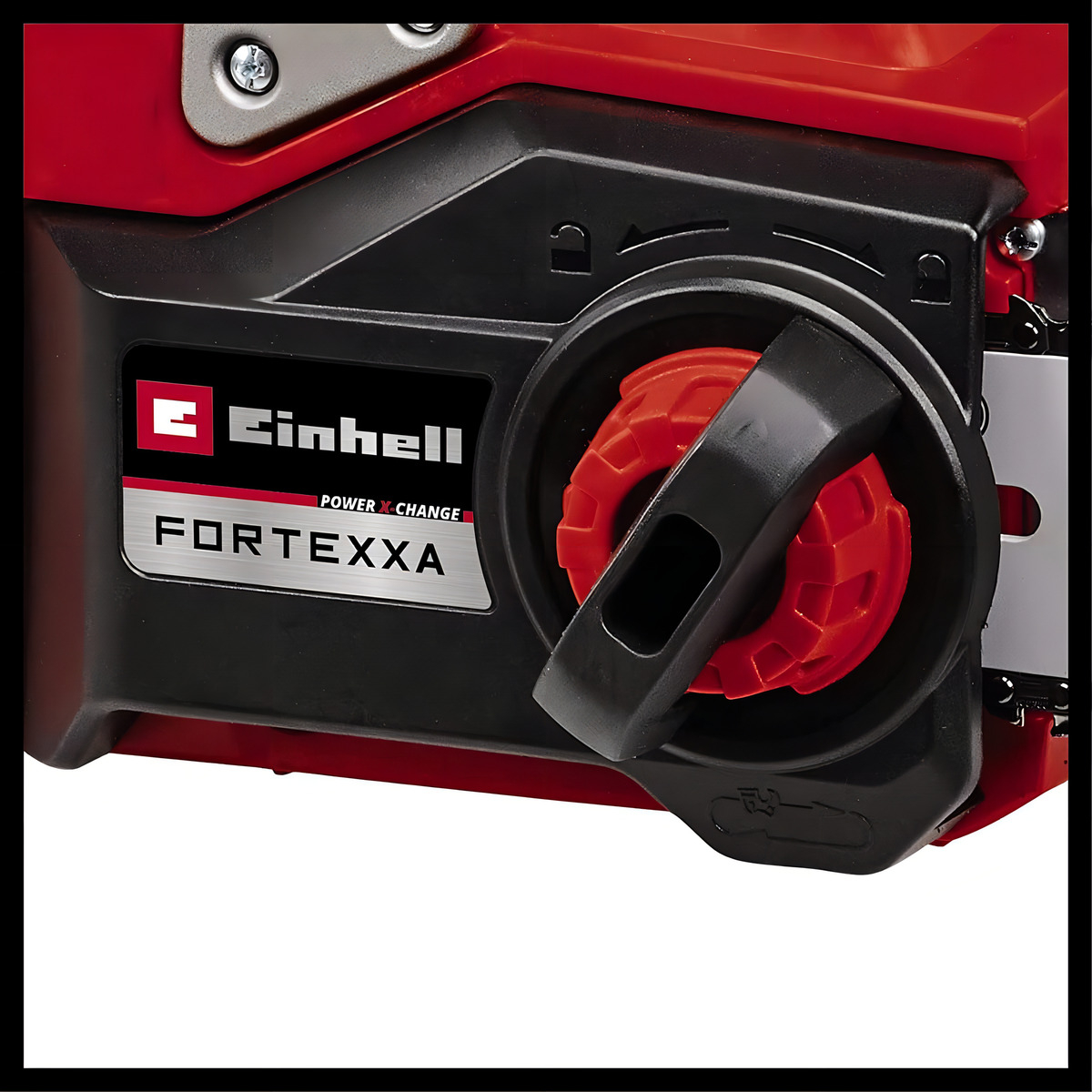 La motosierra con batería FORTEXXA 18/30 de Einhell es un potente miembro de la flexible familia Power X-Change. El equipo se acciona por el motor sin escobillas de Einhell. Este motor sin escobillas ofrece más potencia y una vida útil más prolongada que los motores de escobillas de carbono convencionales. Tras un registro online se aplican 10 años de garantía en el motor sin escobillas. Junto con la espada y cadena de calidad, las ramas gruesas apenas tienen algo que oponer a la FORTEXXA. Para los trabajos con madera industrial y escuadrada así como leña también se obtienen los mejores resultados con la versión con batería de una motosierra. Una tensión de cadena ajustable sin herramientas y un cambio de cadena sencillo facilitan la manipulación. El receptor de cadena y la protección antirretroceso con freno inmediato de la cadena aportan la seguridad durante el uso y la lubricación automática de la cadena a través de una gran abertura de llenado de aceite para el cuidado sencillo. El robusto tope de garras está hecho de metal, el asa ergonómica está equipada con agarre suave para el sostén firme y seguro. Para el funcionamiento se necesita una batería de 18 V Power X-Change. La innovadora serie Power X-Change sobresale por su gran potencia y máxima flexibilidad: las baterías de iones de litio se pueden intercambiar entre los equipos de esta serie de Einhell. Cada sistema de baterías puede utilizarse con cada equipo Power X-Change. La velocidad de cadena es adaptable según la aplicación, es decir, puede conmutarse entre plena potencia (8,9 m/s) y modo ECO (6 m/s). Con velocidad de cadena reducida se alarga la duración de la batería. El envío se realiza sin batería ni cargador, estos son adquiribles por separado, por ejemplo, como un práctico set para principiantes.