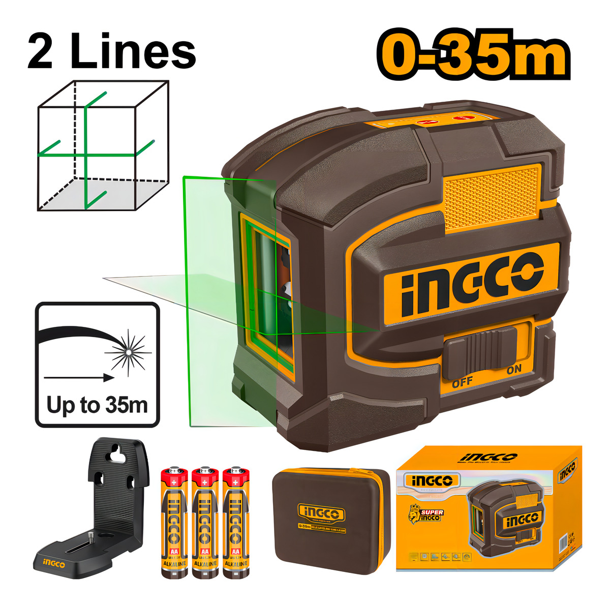 Nivel Laser Autonivelante 35mts Luz Verde 2 Líneas Ingco