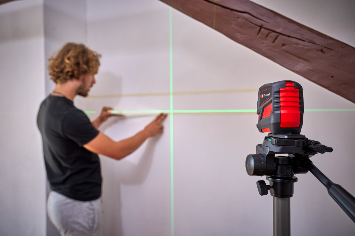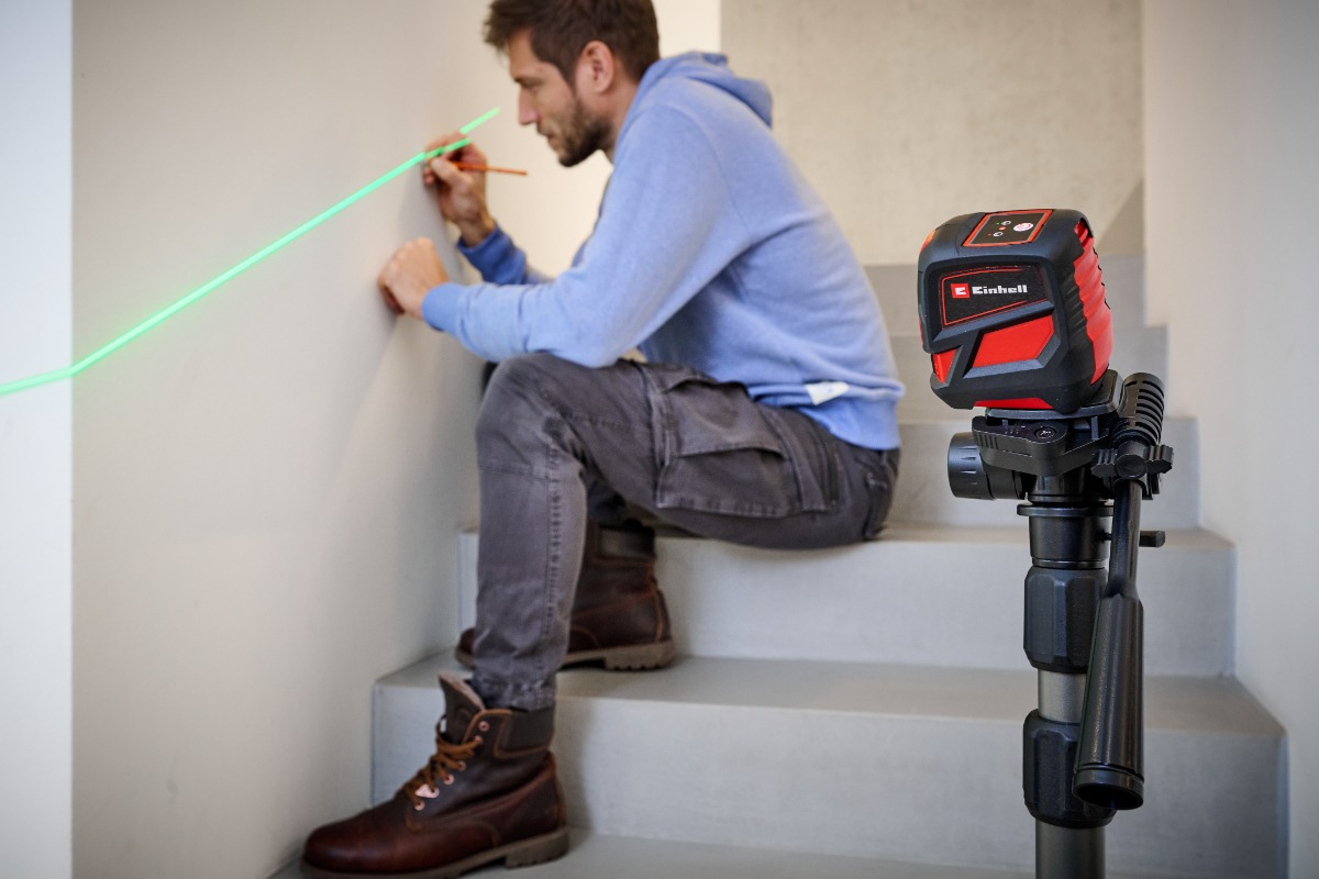 El láser de líneas cruzadas TC-LL 2 G de Einhell es una herramienta ideal con un alcance máximo de 16 metros para instalaciones, trabajos de saneamiento o renovación. Las líneas láser verdes son generadas por diodos láser con una longitud de onda de 510 a 530 nm y, por lo tanto, corresponden a la clase de láser II. La precisión es de 0,5 mm/m. El TC-LL 2 G proyecta líneas láser horizontales y verticales para una alineación rápida y cómoda según los requisitos. Las líneas se pueden cambiar individualmente pulsando un botón: horizontal, vertical o como línea cruzada. Este láser autonivelante advierte en caso de una inclinación de más de 4° a través de un LED y tiene un tiempo de alineación corto de menos de 5 segundos. El láser de líneas cruzadas dispone de un nivel de burbuja digital integrado con el que se puede determinar si el equipo está perfectamente nivelado. El nivelador está equipado con una rosca de trípode de 1/4″, lo que permite un fácil montaje en diferentes trípodes. La superficie de agarre suave garantiza un manejo cómodo. La abrazadera universal incluida en el alcance del envío es ideal para fijar el láser de líneas cruzadas a mesas, estantes o similares. En el alcance del envío está contenido una práctica bolsa para su almacenamiento. Para el funcionamiento se necesitan dos pilas AA. Estas no están incluidas.