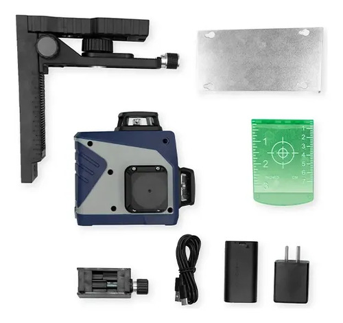 El nivel láser también incorpora un punto de plomada, lo que añade precisión a las tareas de verticalidad. Además, viene con un conjunto de accesorios que incluye un soporte, cargador, batería, cable USB, placa de metal y tarjeta de puntería, proporcionando todo lo necesario para comenzar a trabajar de inmediato.