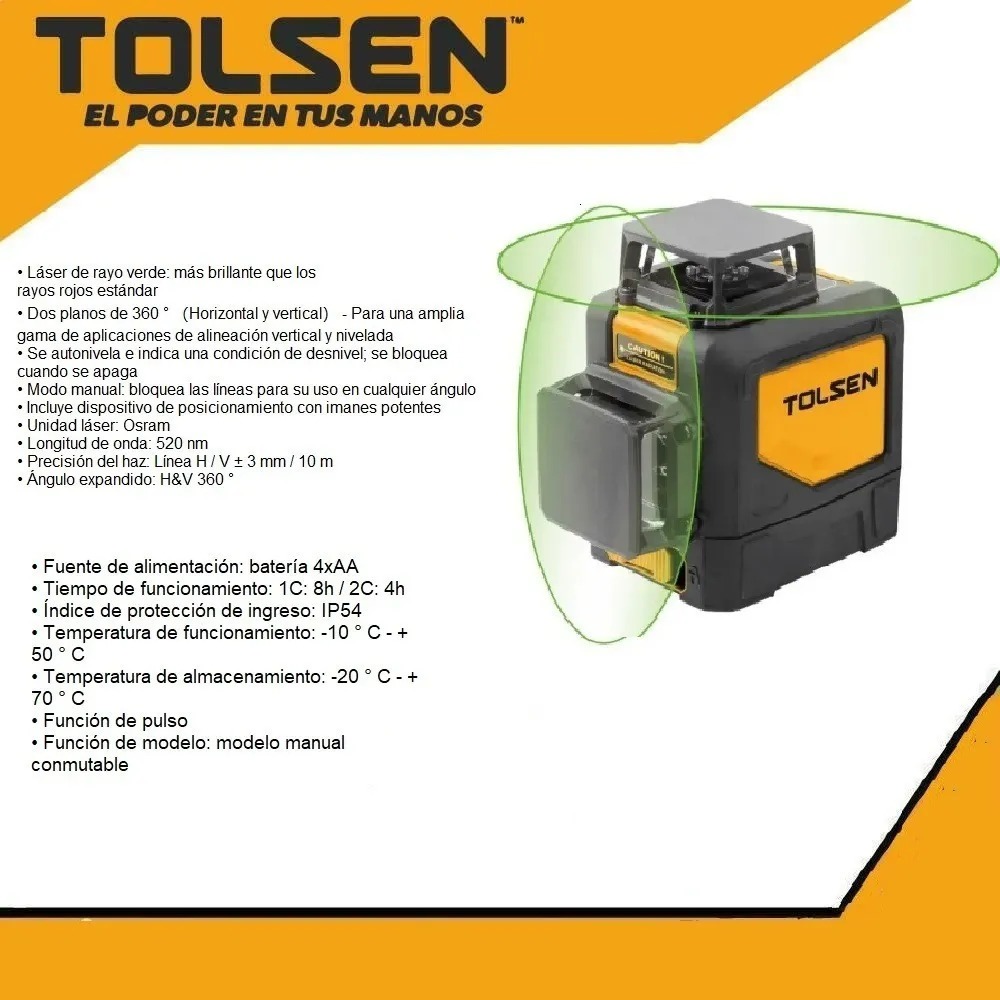 NIVEL LÁSER CRUZADO HORIZONTAL DE 360 ° VERTICAL 360° – AUTO NIVELADO DE HAZ VERDE