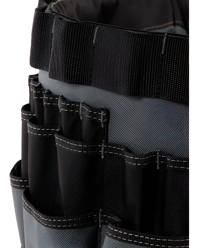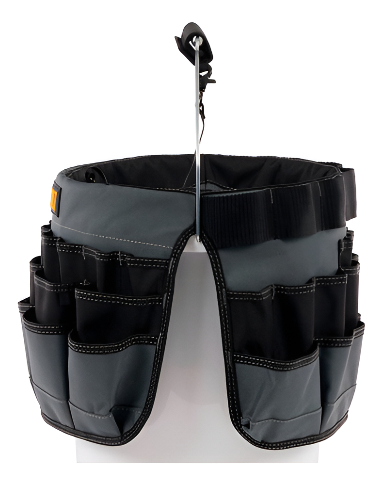 Este producto cuenta con un amplio compartimento central y 38 bolsillos, diseñado para almacenar y organizar todas tus herramientas y suministros de manera eficiente. Está fabricado con tejido 900D resistente al desgaste, lo que proporciona una organización óptima y te permite acceder rápidamente a tus herramientas. Este organizador está construido para resistir las pruebas más arduas en el lugar de trabajo, garantizando una larga vida útil. Incluye una cadena para cinta métrica que mantiene tus herramientas de medición al alcance y una correa para facilitar el transporte.