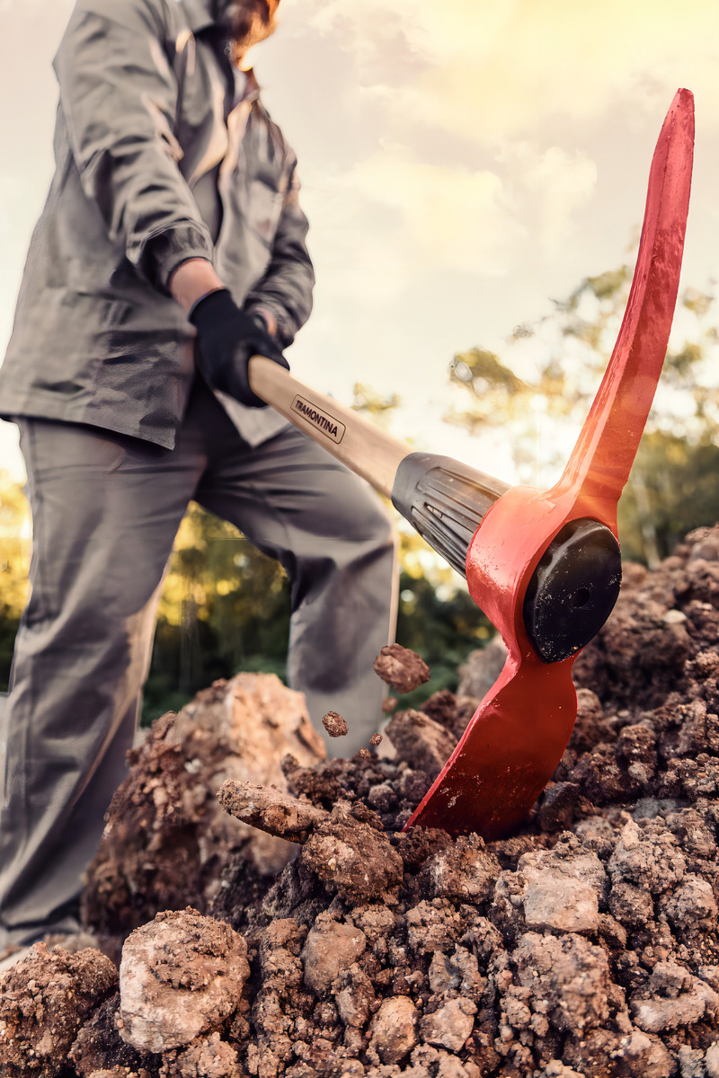 Este pico de Tramontina es ideal para trabajar con superficies muy duras, ya que cuenta con lámina de acero forjado. El sistema de colocación del mango con buje plástico evita que el mango se suelte de la lámina y ayuda a absorber el impacto durante el uso.