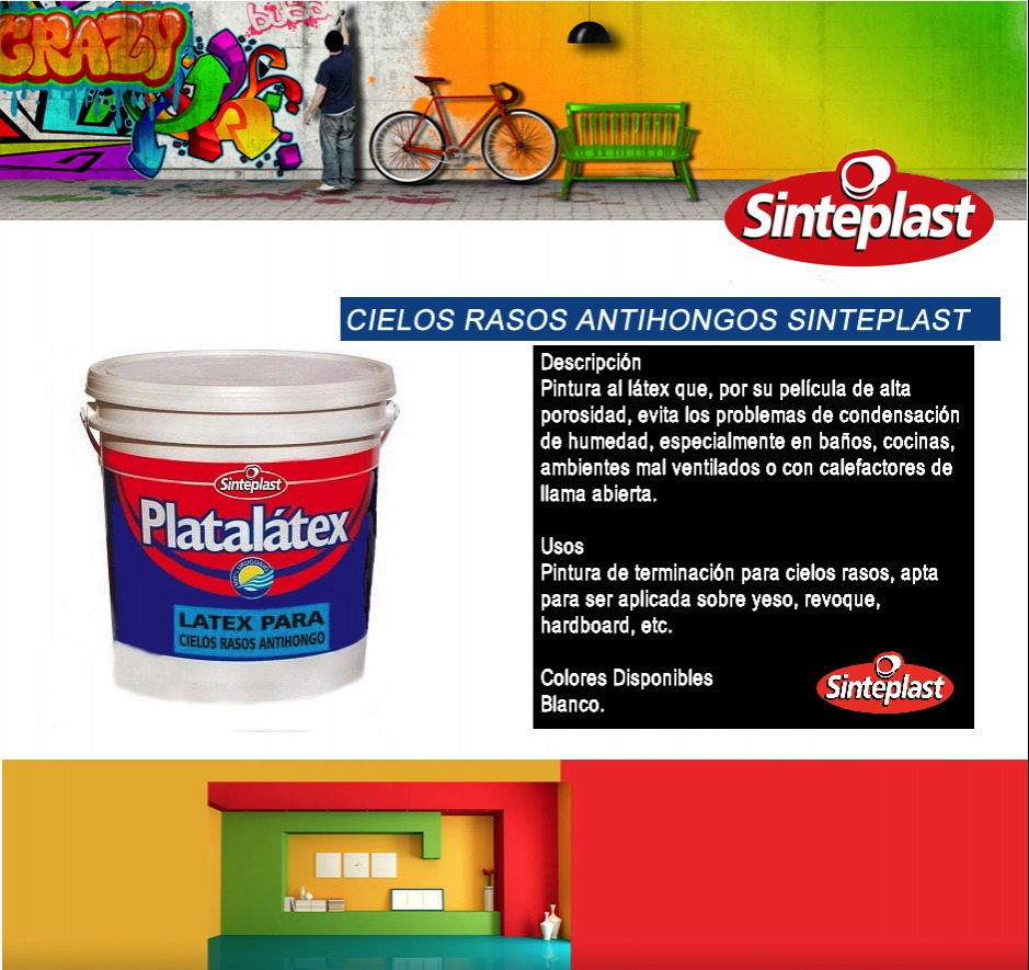 Pintura Cielos Rasos Antihongos 4 Lts Platalatex Sinteplast