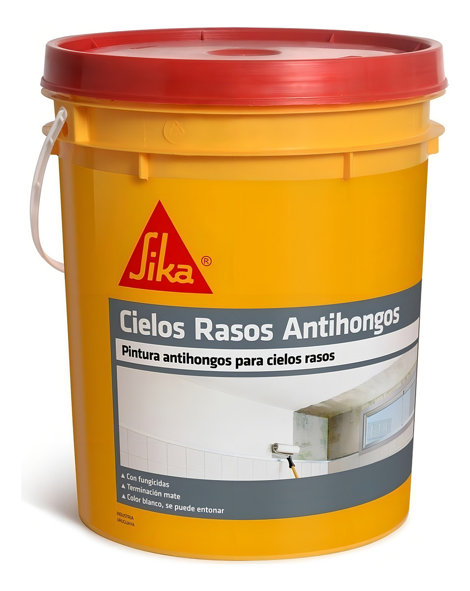 Cielos Rasos Antihongos viene listo para aplicar, aunque puede diluirse con agua hasta un 10% dependiendo del sistema de aplicación.