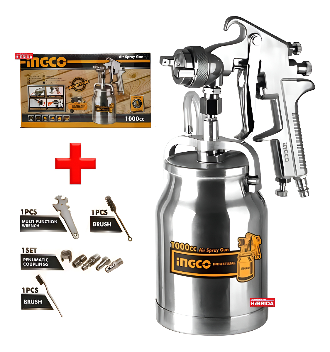 La ‘Pistola De Aire Para Pintar A Compresor Alta Presión 1000cc Color Amarillo’ es un producto de alta calidad diseñado para satisfacer todas tus necesidades de pintura. Esta pistola de pintura de la marca ASG3102, reconocida por su durabilidad y rendimiento, viene en un atractivo color amarillo que añade un toque de estilo a tu equipo de pintura. Con una boquilla estándar de 1.8mm y una boquilla opcional de 1.4-2.5mm, puedes ajustar el ancho del patrón de pintura entre 200-250mm para adaptarse a diferentes proyectos. La pistola tiene una capacidad de pintura de 1000cc y es adecuada para la capa base. Acepta todos los tipos de pintura, lo que la hace extremadamente versátil. Funciona a una presión de 3-4bar, con un consumo de aire de 4.6-7.1cfm (130-200l / min). El volumen del tanque es de 1000 mL y la presión de trabajo es de 4 bar. Todo esto viene empaquetado en una caja de color, lo que la hace perfecta para regalar o para añadir a tu colección de herramientas.