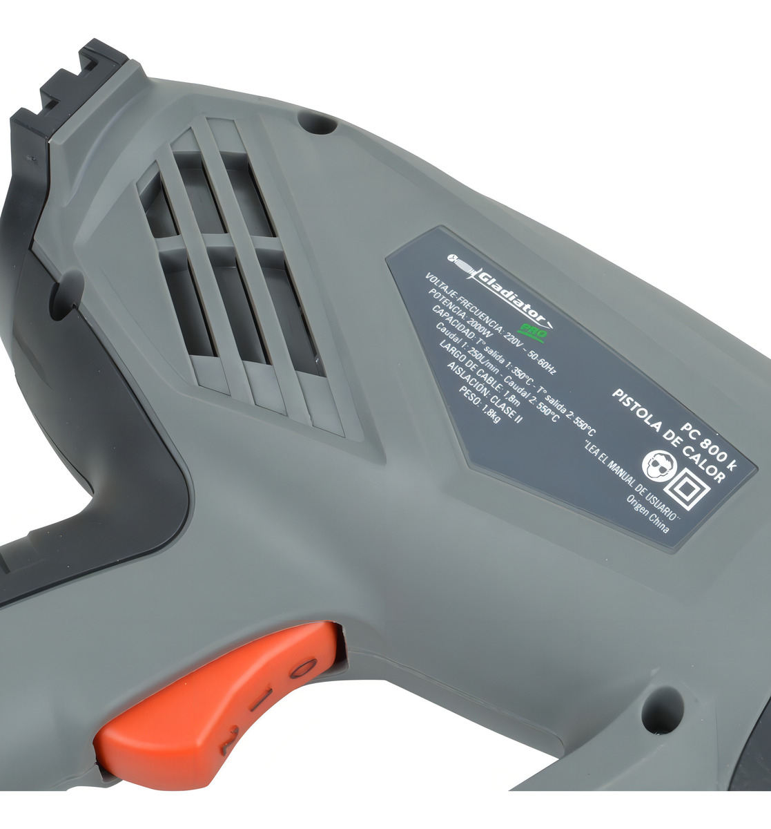Pistola De Calor 2000w Gladiator Pro Pc800k Gris Oscuro