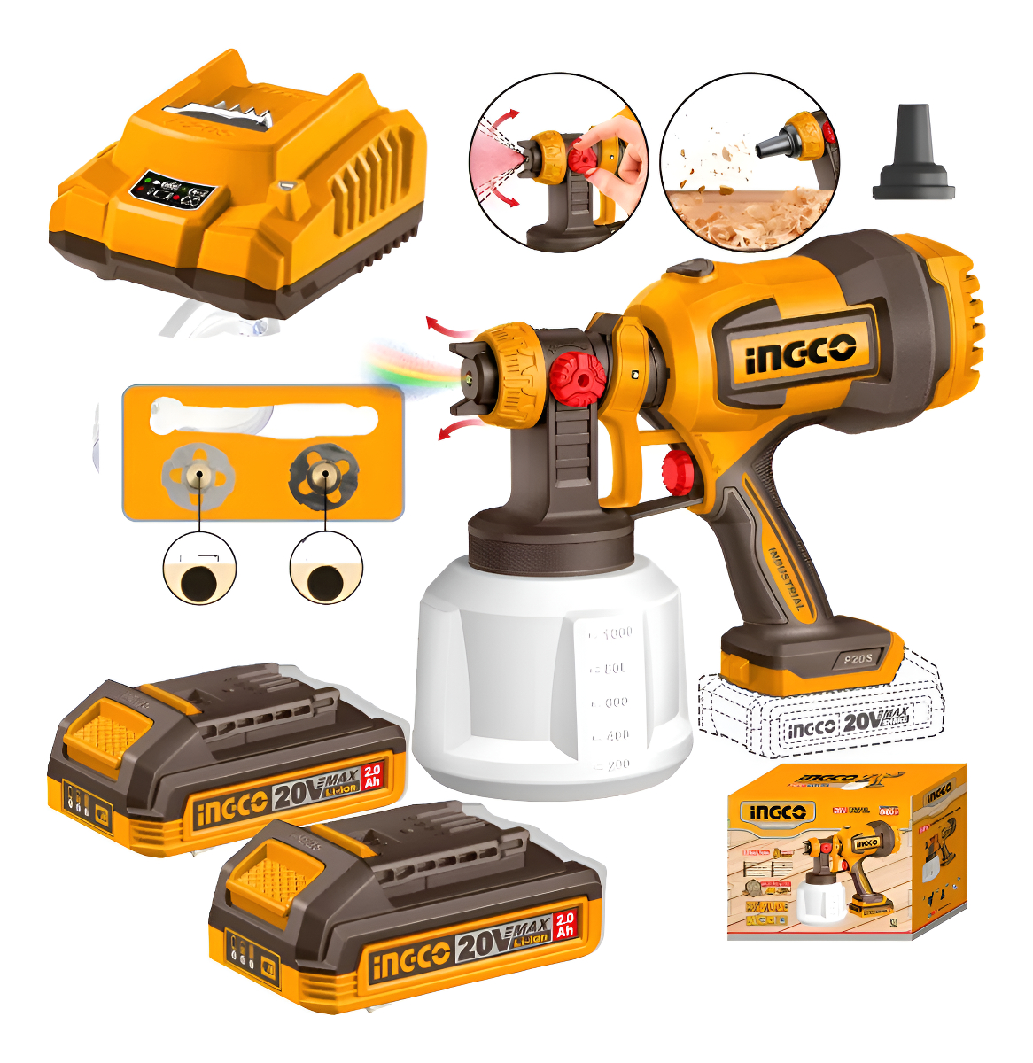 Pistola De Pintura Pintar 2 Baterías Y Carg 20v Ingco Csgli2