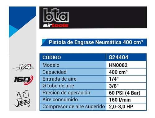 Pistola Engrasadora 2 En 1 Bta Neumática 400g Flex Manual cantidad