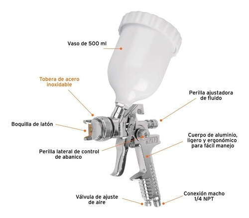 Pistola P/pintar Gravedad Hvlp, Boquilla 1.4mm, Truper 12128 Color Blanco