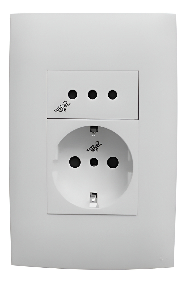 Plaqueta Presta Vivion Con Toma Schuko + 1 Tres En Línea Pf Color Blanco