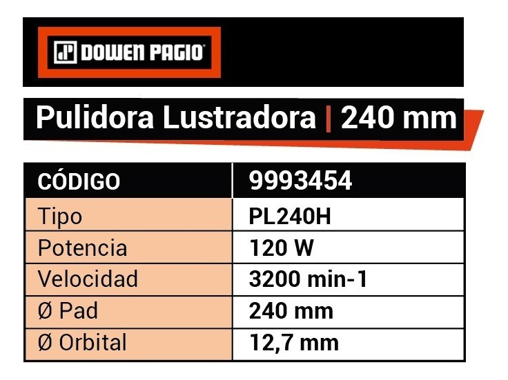 Pulidora Lustradora Orbital 240mm 120w Dowen Pagio 3454