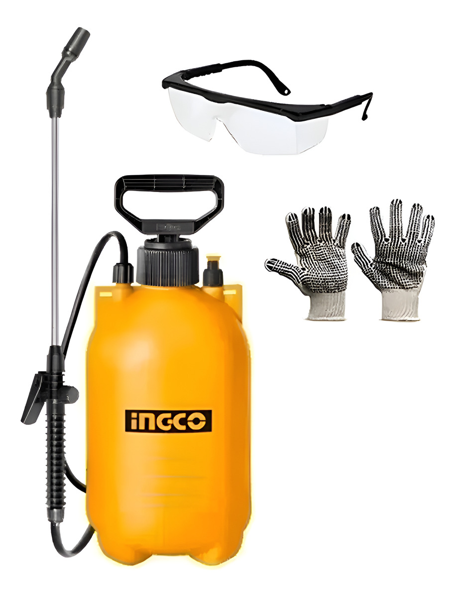5L Válvula de seguridad Práctica correa de transporte Manguera flexible de 1,2 m de longitud Lanza inoxidable y boquilla de plástico Activador de encendido / apagado con bloqueo de gatillo Patrón de rociador ajustable para rociar Embalado por caja de color