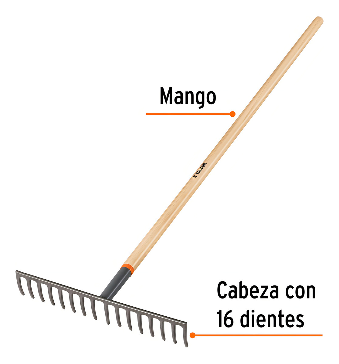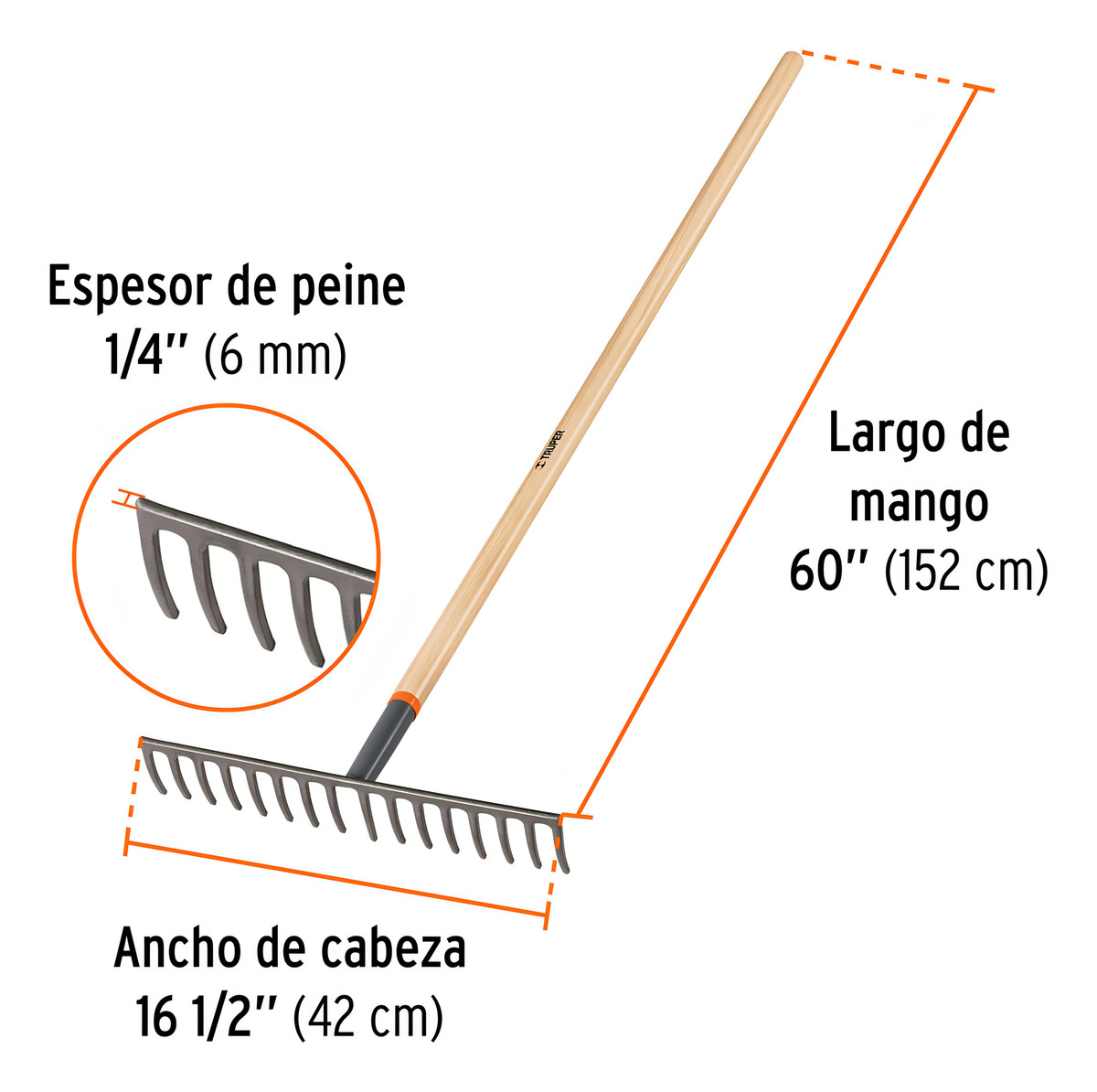 Rastrillo Recto De Jardinería 16 Dientes Mango 60» Truper