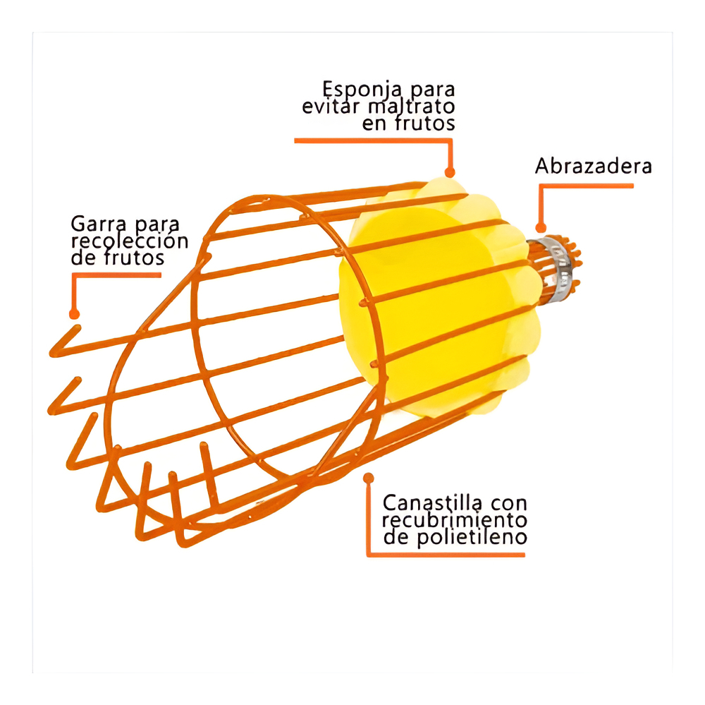 El modelo FRUT de Truper cuenta con un diseño inteligente que permite recoger frutas de diferentes tamaños, desde pequeñas como ciruelas hasta más grandes como manzanas o naranjas. Su diseño de cesta asegura que la fruta caiga suavemente, evitando que se dañe en el proceso.