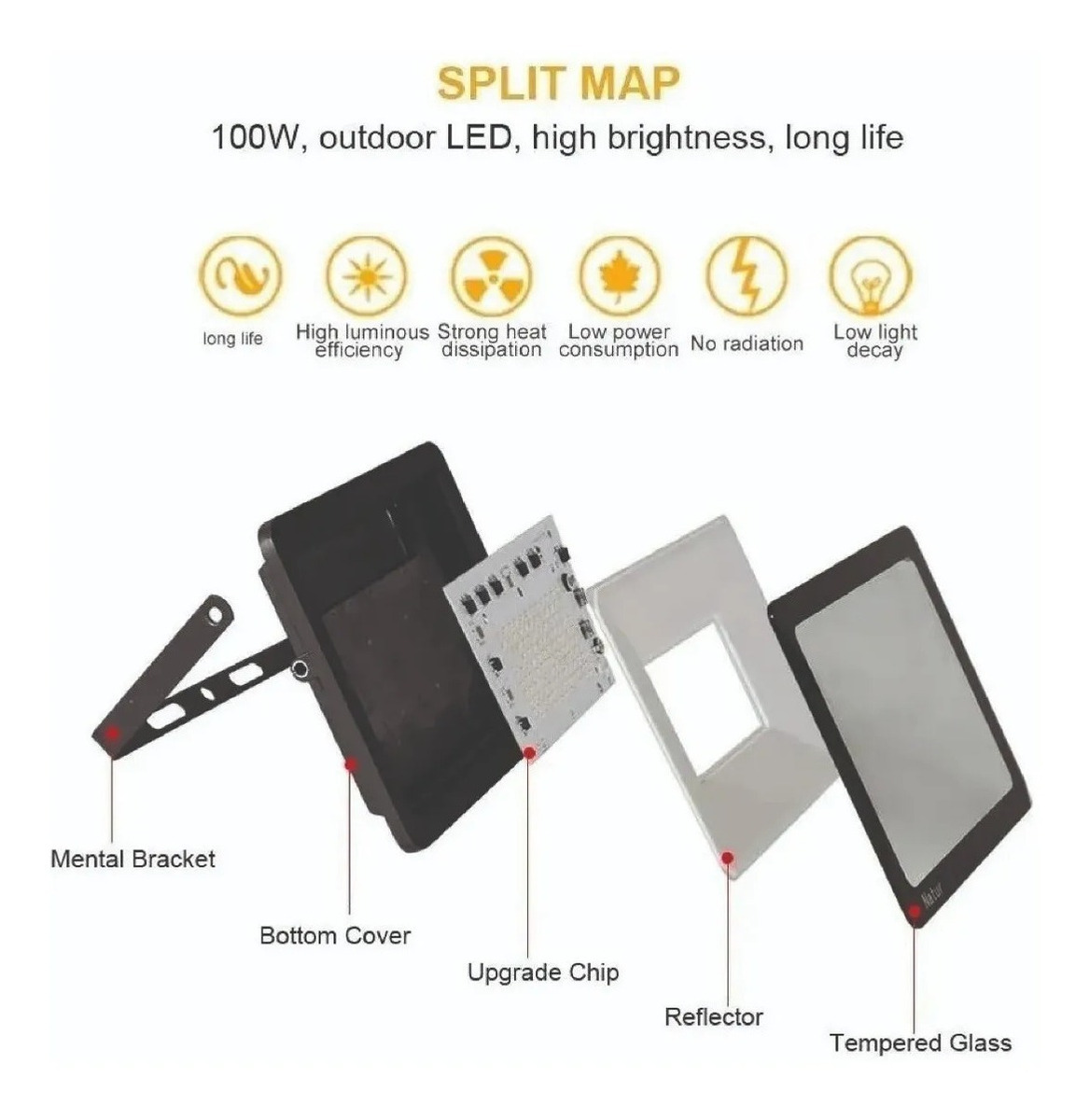 El Proyector LED APPLE 30W está fabricado en ALUMINIO y VIDRIO TEMPLADO, dándole al producto acabados finos y estéticos.