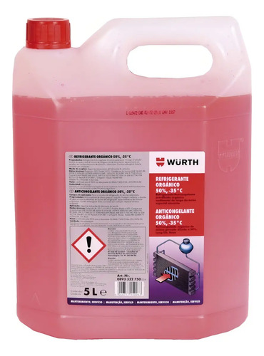 Refrigerante Anticongelante Organico Wurt Diluido Al % 50de 5 Litros Rosa