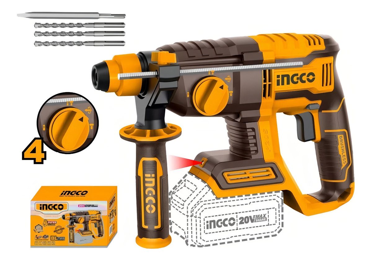 Descubre el potente Rotomartillo 20V de Ingco, diseñado para satisfacer todas tus necesidades de perforación y cincelado. Con un motor sin escobillas, este rotomartillo ofrece un rendimiento excepcional y una mayor durabilidad. Su sistema de portabrocas SDS Plus permite un cambio rápido y sencillo de accesorios, mientras que su embrague de seguridad garantiza un uso seguro en todo momento. Con cuatro modos de operación, podrás adaptarlo a diferentes tareas, desde perforar hormigón hasta trabajar con madera. La luz de trabajo LED integrada proporciona visibilidad en áreas oscuras, y su capacidad de perforación máxima de 22mm en hormigón lo convierte en una herramienta versátil. Incluye accesorios como brocas y un cincel, asegurando que estés listo para cualquier proyecto. Con una velocidad máxima de rotación de 1100 rpm y golpes por minuto de 5400, este rotomartillo es la elección ideal para profesionales y aficionados al bricolaje.