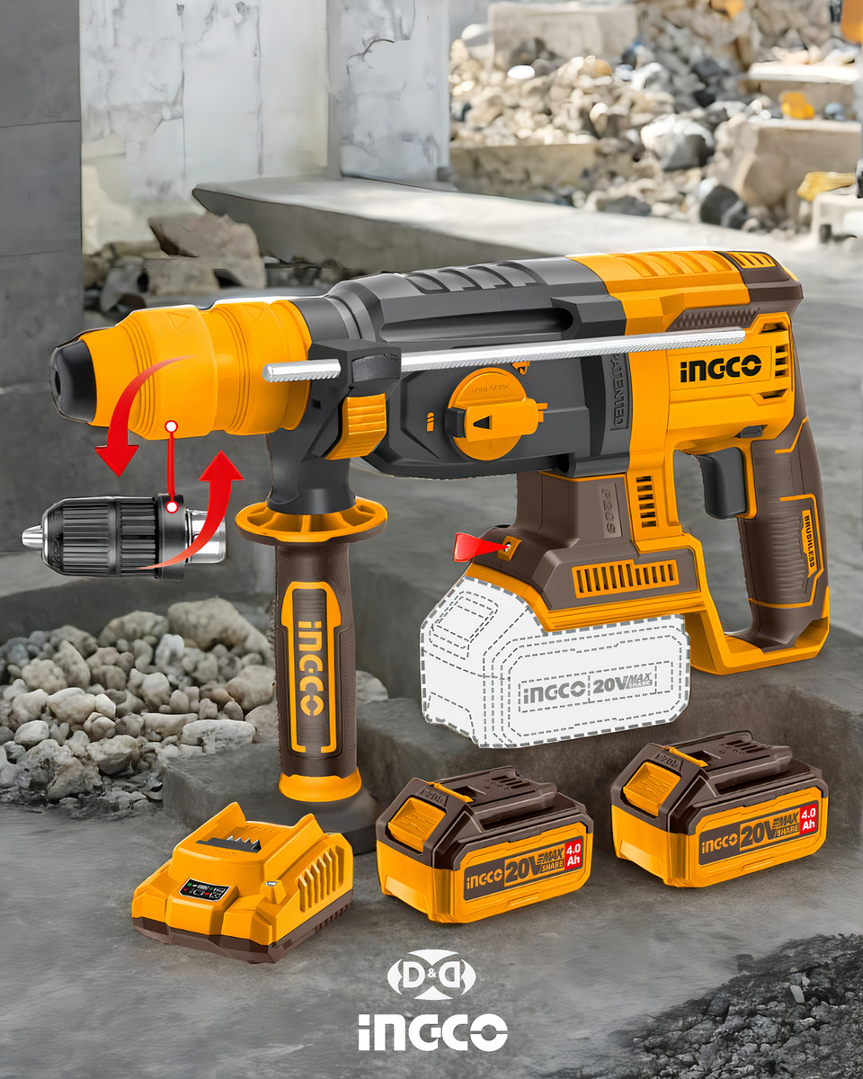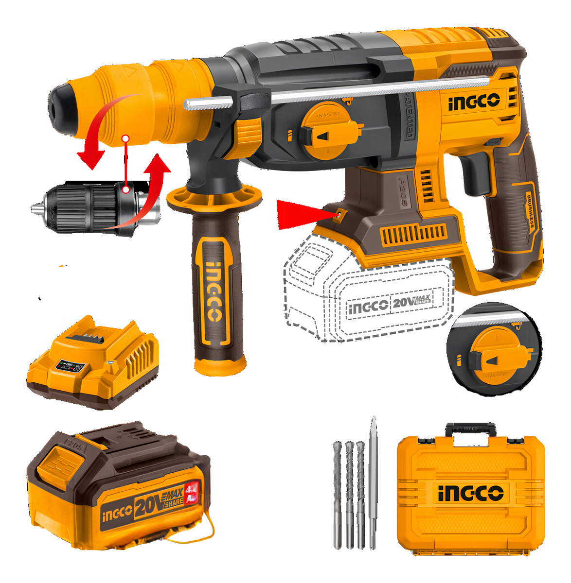 ROTOMARTILLO 20V P20S 26MM 4 FUNCIONES C ADAPTADOR MANDRI RÁPIDO BRUSHLESS C 2 BAT X 4AH + CARG + VALIJA