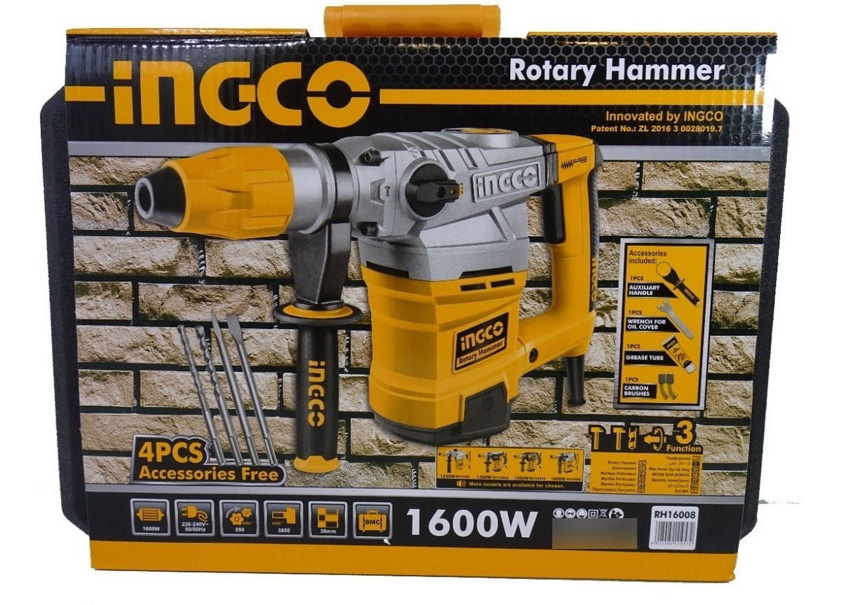 Este rotomartillo Ingco Tools RH16008 es lo que necesitás para encarar trabajos pesados, seas una persona aficionada o un profesional. Su funcionamiento es muy similar al de un taladro, solo que esta herramienta es más potente y permite trabajar en materiales más firmes.