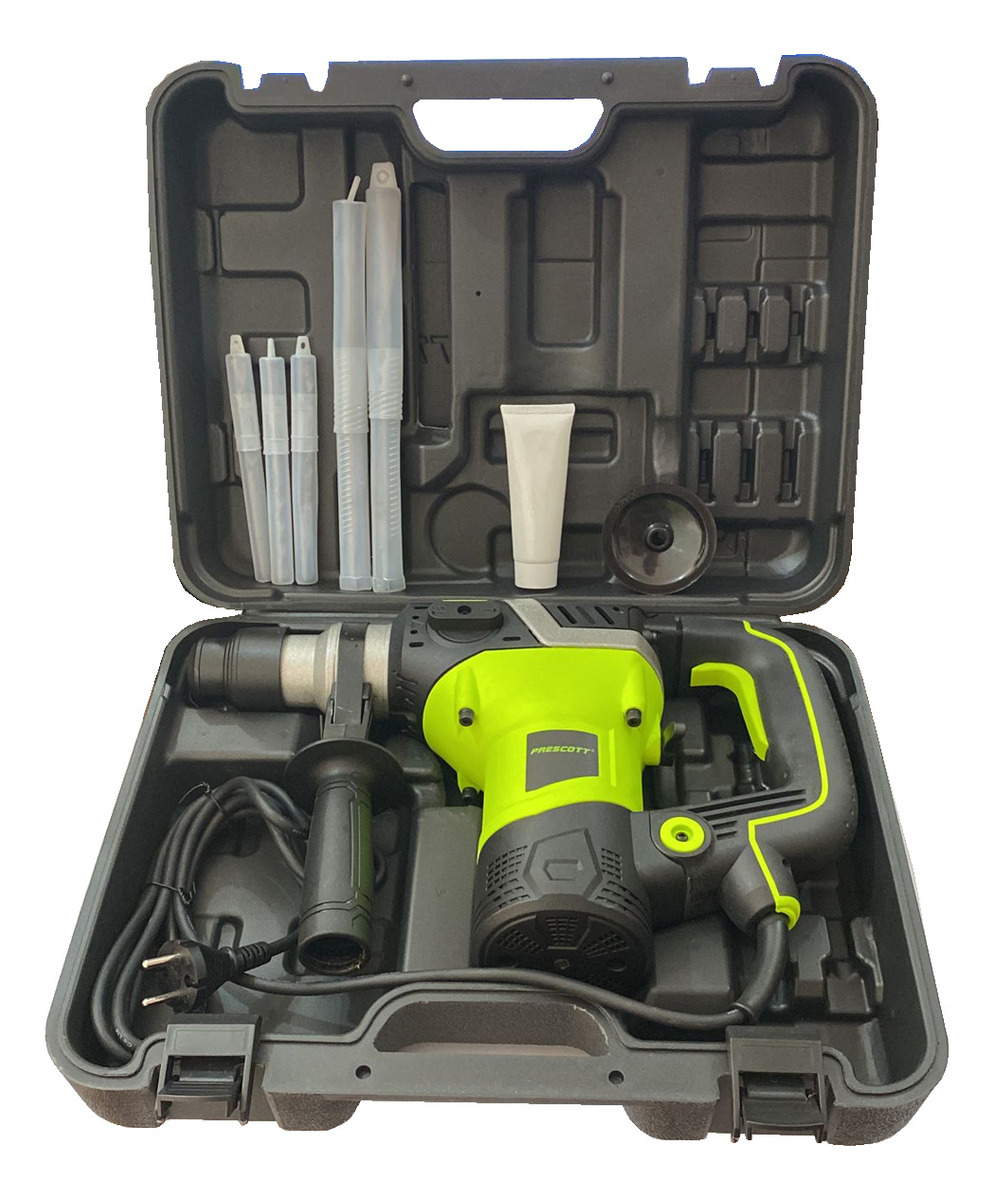 Este rotomartillo Prescott PT0403602 es lo que necesitás para encarar trabajos pesados, seas una persona aficionada o un profesional. Su funcionamiento es muy similar al de un taladro, solo que esta herramienta es más potente y permite trabajar en materiales más firmes.