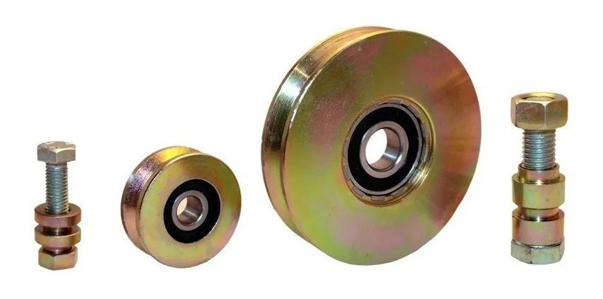 – Rueda de Hierro con 2 separadores, tornillo y tuerca de 77 mm Para Portones, Puertas o Ventanas.
