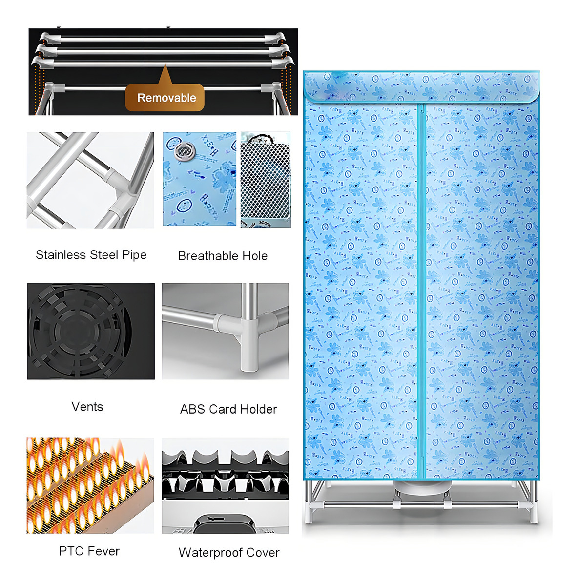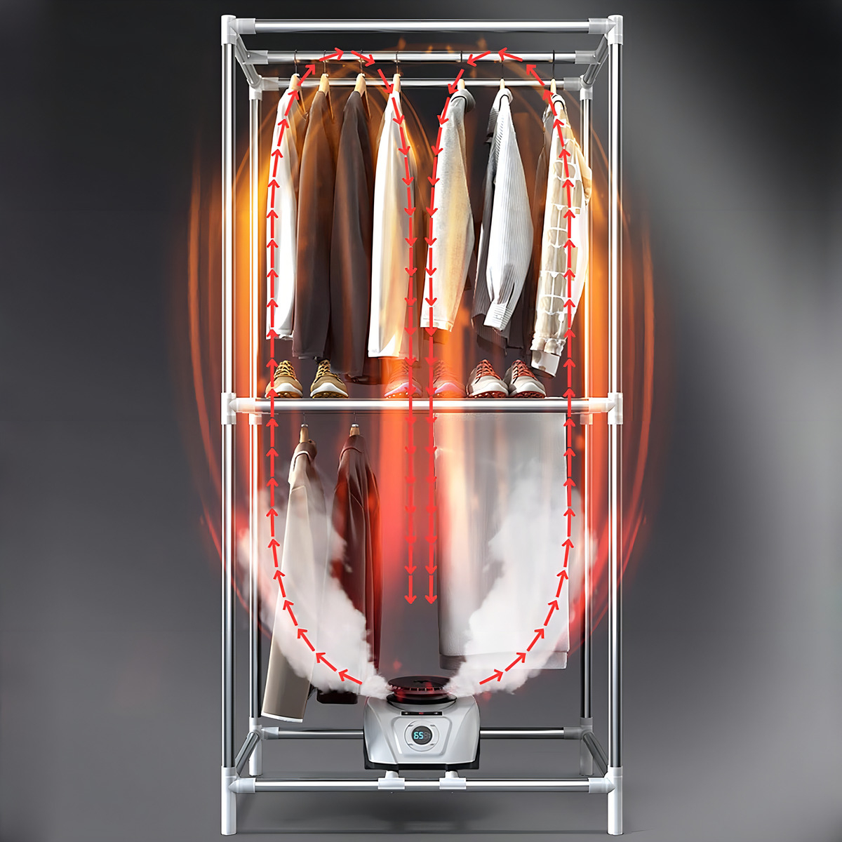 Calefacción por aire caliente de 360 ° para secar la ropa.