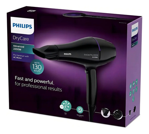 Secador De Pelo Philips Drycare Bhd274/00 Thermo Protect Color Negro/violeta