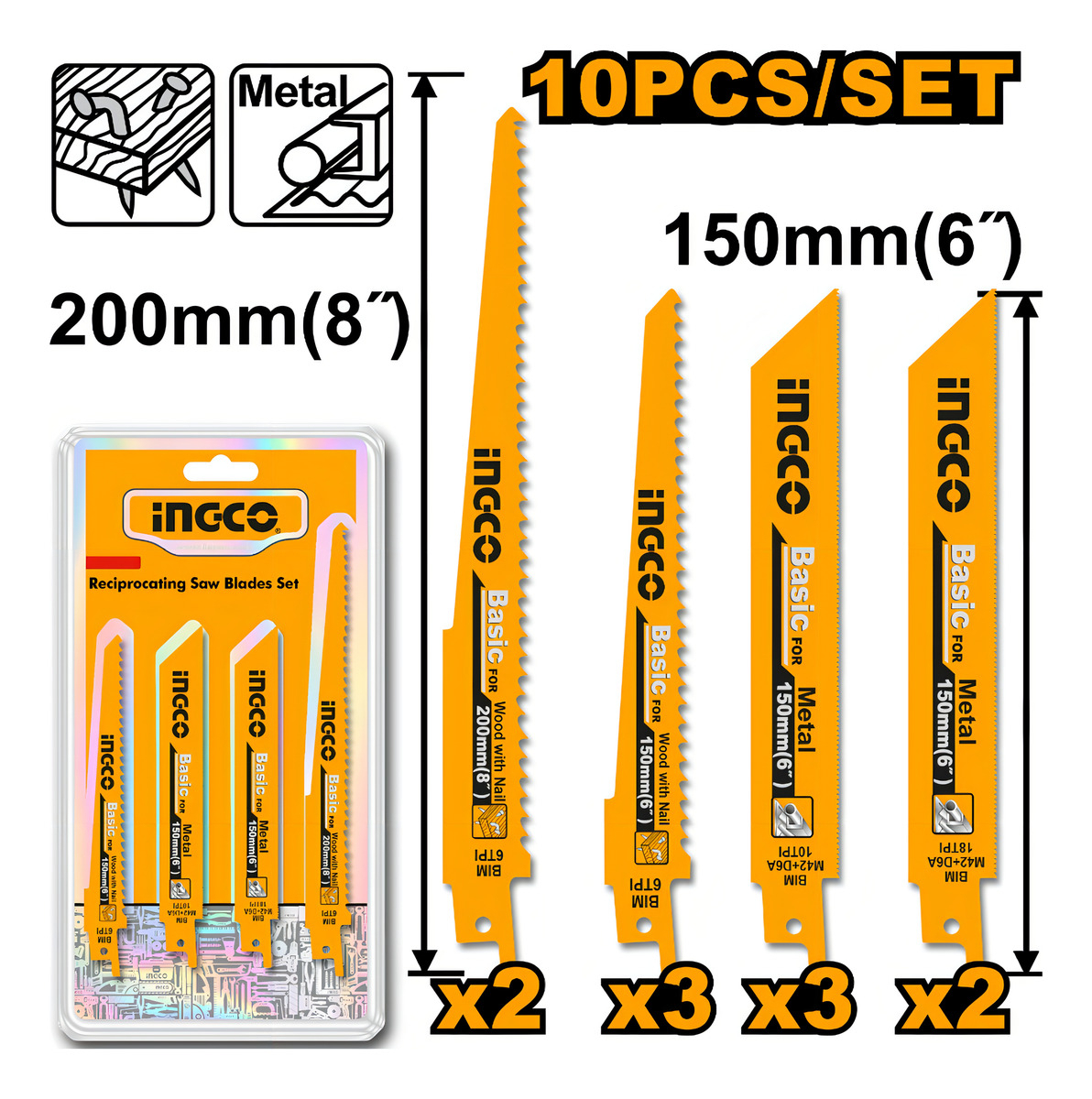 Set 10 Hojas Para Sierra Sable Metal Madera Ingco Rsb1001