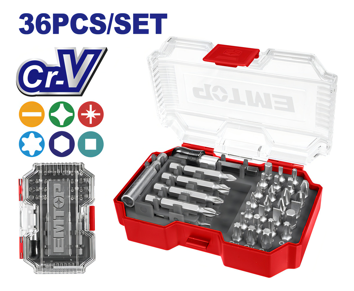 Set De Puntas Emtop Emsv3k04 Torx Hexagonal Diamante Cr-v 36 Unidades