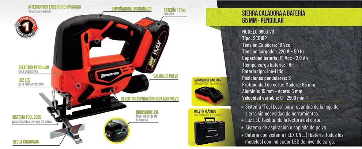 Sistema «tool less» para recambio de la hoja de sierra sin necesidad de herramientas.