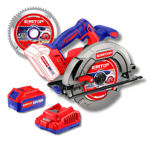 Sierra Circular Emtop 7 1/4 Inalámbrica C/batería Y Cargador Rojo