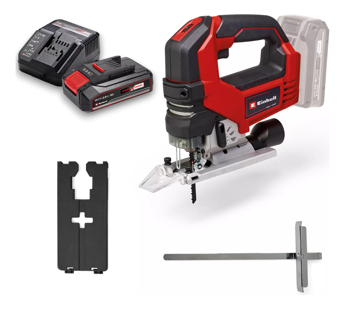 La sierra de calar profesional sin cable TP-JS 18/135 Li BL de Einhell es la herramienta perfecta para bricoladores ambiciosos que necesitan el corte perfecto en una gran variedad de materiales. Como miembro de la familia Power X-Change, ofrece una excelente flexibilidad a la hora de trabajar en el hogar, el taller y el garaje, ya que todos los dispositivos, baterías y cargadores pueden combinarse dentro de la familia del sistema. Con su gran suavidad de marcha, la sierra de calar sin cable consigue cortes precisos. Para cortes rápidos, puede conectarse la carrera pendular. La herramienta se acciona mediante un motor Einhell Brushless. Este motor sin escobillas proporciona más potencia y más tiempo de funcionamiento que un motor convencional de escobillas de carbón. Una vez registrado en línea, el motor sin escobillas tiene una garantía de 10 años. La potente sierra de calar sin cable puede realizar cortes de hasta 135 mm de profundidad en madera y 10 mm en acero, así como cortes en bisel de hasta 45°. También cuenta con un cómodo indicador de línea de corte y una luz LED para iluminar la zona de corte. Gracias a la electrónica de velocidad, es posible trabajar perfectamente adaptado al material y a la aplicación. El portacuchillas sin herramientas reduce los movimientos innecesarios y permite cambiar la cuchilla de forma rápida y sencilla. La función de soplado de polvo o, alternativamente, el adaptador de aspiración incluido, que permite conectar un aspirador en húmedo/seco, garantizan una visibilidad óptima durante el trabajo. El inserto deslizante de plástico integrado protege las piezas de trabajo especialmente delicadas, mientras que la protección antiastillas garantiza cortes sin desgarros. La estable placa base de aluminio amortigua las vibraciones de la sierra. Incluye una hoja de sierra de calar para madera. El producto no incluye batería ni cargador. Estos están disponibles por separado, por ejemplo en un práctico set de inicio.