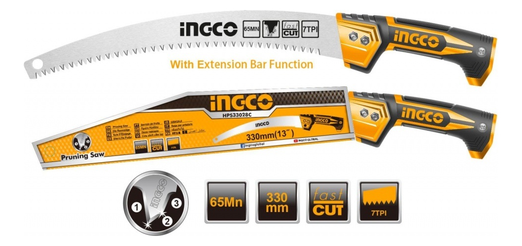 Fabricada por la reconocida marca Ingco, esta sierra de poda garantiza una excelente calidad y durabilidad. Su diseño ergonómico y ligero facilita su manejo, evitando la fatiga y permitiéndote trabajar de manera más eficiente.