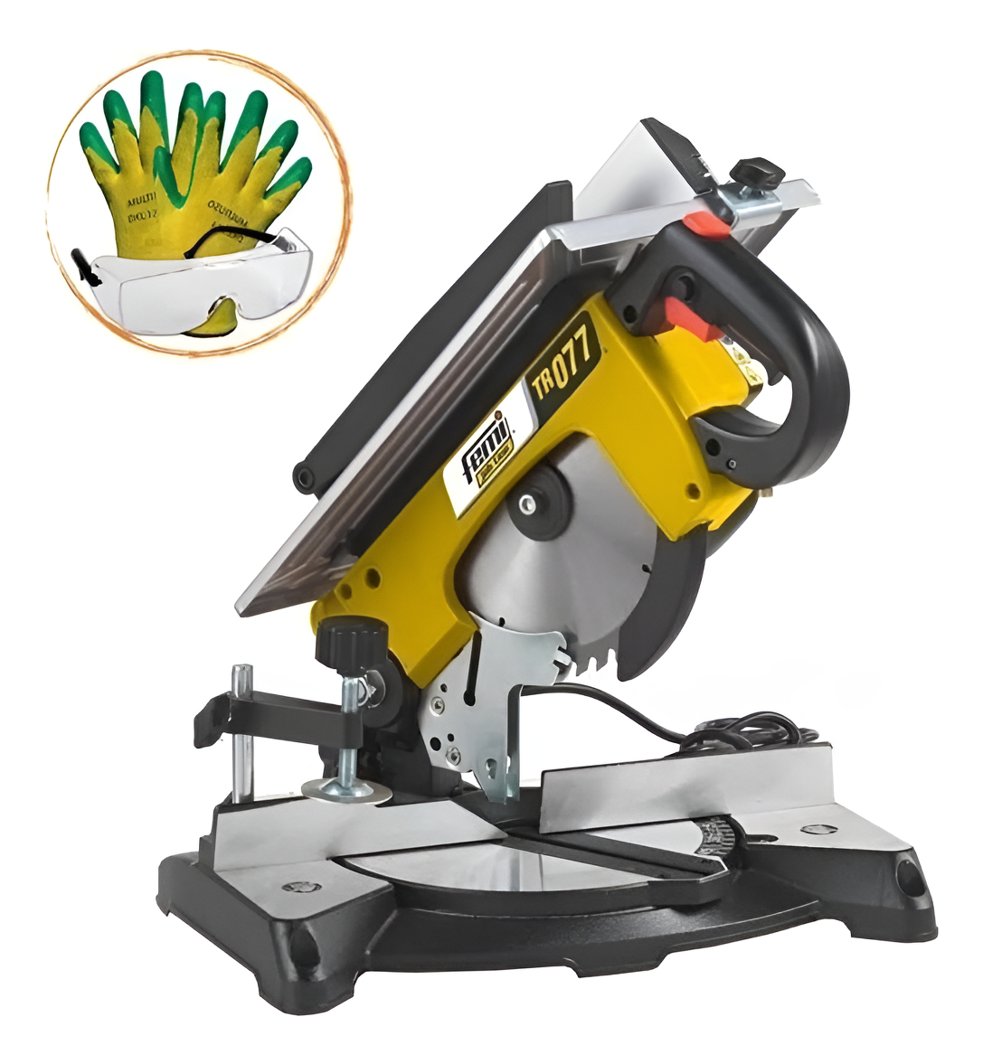Sierra ingletadora combinada sierra de mesa en la parte superior. inglete 90° y 45°