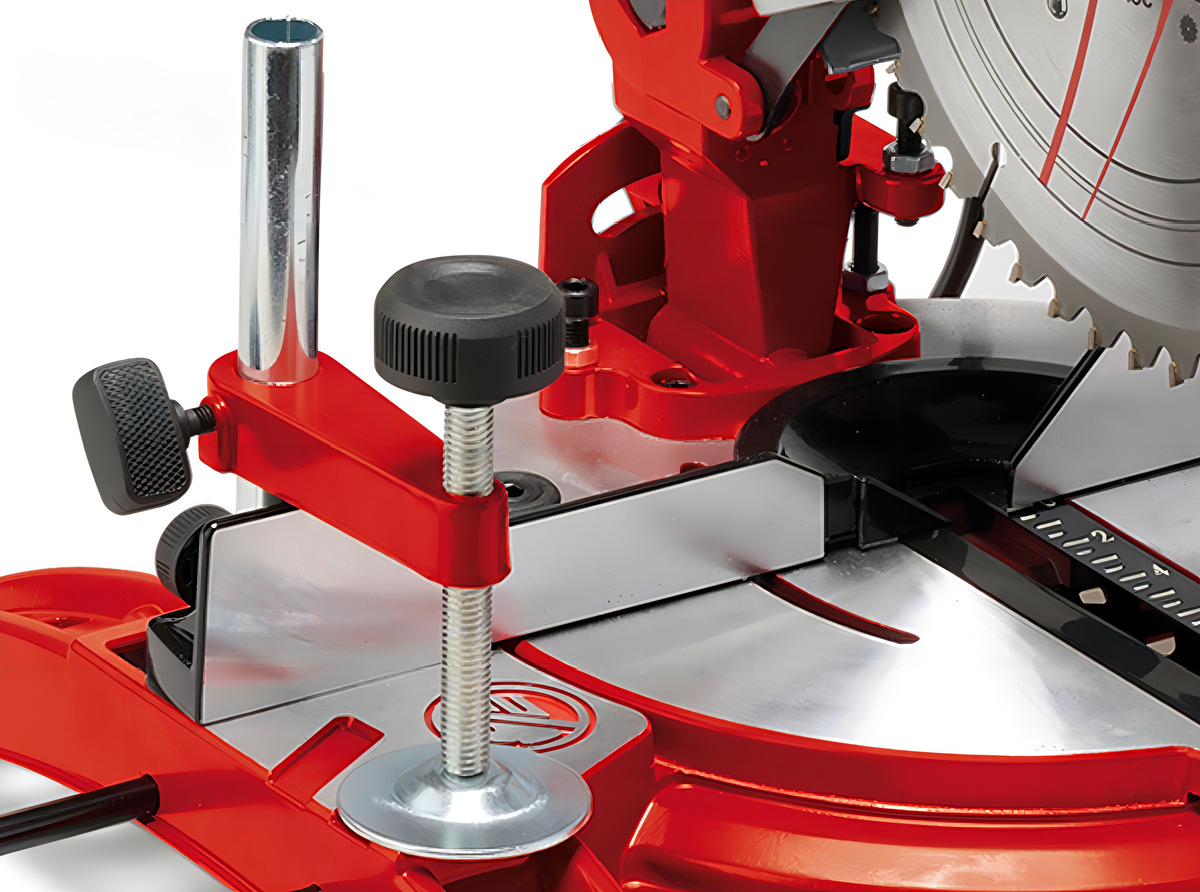 Equipada de una hoja de sierra de metal duro con calidad profesional, la ingletadora TH-MS 2112 está lista de forma rápida para realizar pequeños trabajos como tronzado y cortes a inglete en materiales de madera, tableros revestidos y plástico. La mesa de trabajo de alta calidad de fundición a presión de aluminio convence por su ajuste de ángulo exacto, que se puede regular con una mano en distintas posiciones. El inserto de mesa está equipado de una práctica escala, en la que se puede ver la anchura de la pieza de trabajo de forma cómoda desde la posición de trabajo. Mientras que los apoyos de las piezas de trabajo en ambos lados y un dispositivo de sujeción fiable garantizan un trabajo exacto, la regulación de la profundidad de corte también permite llevar a cabo tareas exigentes con facilidad. La hoja de sierra de metal duro con calidad profesional ofrece una capacidad de corte por encima de 200 m en tableros de virutas y se puede cambiar de forma sencilla debido al bloqueo del husillo. La bolsa de polvo mantiene limpio el puesto de trabajo y un candado de transporte garantiza un transporte sencillo y seguro.