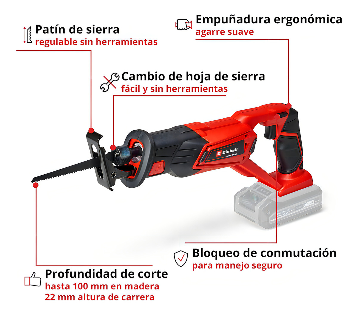 3 años de garantía en la herramienta y 10 años en motores sin carbón con registro previo en la web de Einhell Uruguay