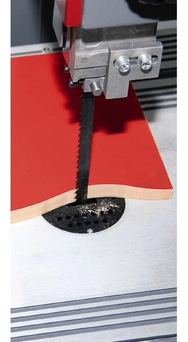 Opciones para realizar cortes exactos longitudinales, de inglete o de mano libre en madera, plástico y materiales similares. Su motor de 750 W de alto grado tiene mucha potencia en reserva para materiales que son difíciles de cortar. La sierra tiene una función de ajuste de recorrido de correa y una guía de sierra de cinta ajustable en altura con protector de hoja. Las dos velocidades de la sierra de cinta se pueden configurar rápida y fácilmente con la transmisión por correa. Tiene una mesa de sierra infinitamente inclinable de 0 ° a 45 °. Para cortes exactamente guiados, tiene un tope de ángulo infinitamente ajustable y un tope paralelo con ajuste rápido. La estabilidad segura y una altura de trabajo óptima están aseguradas por los robustos pies de apoyo. Se proporciona un puerto extractor de polvo, al igual que el dispositivo de seguridad obligatorio.
