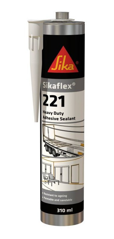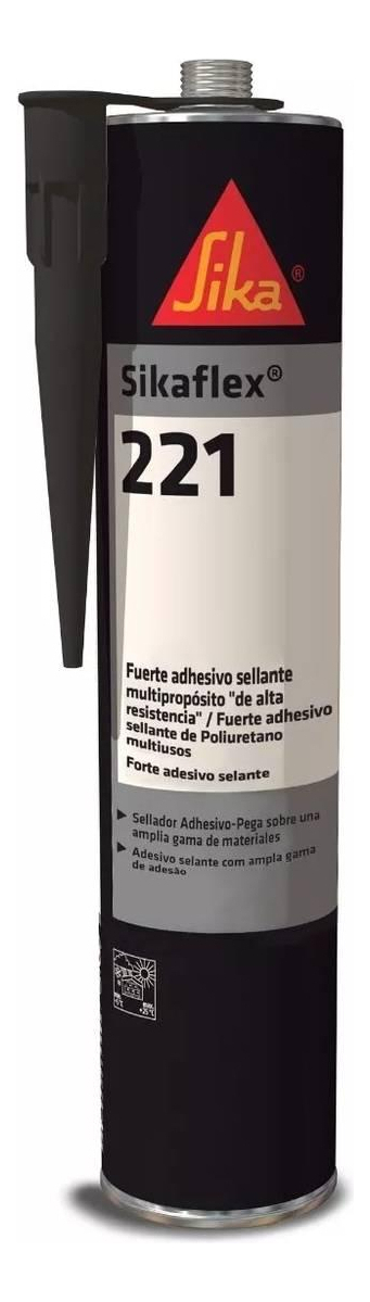 Sikaflex 221 es un sellante de poliuretano multipropósito de alta adhesión, tixotrópico, capaz de formar una goma duradera y resistente. Se adhiere a una variedad de materiales como metales, madera, cerámica, plásticos, entre otros. Una vez seco, el sello no se quebraja y se puede lijar y pintar. Es ideal para sellos permanentemente elásticos que requieran de una alta resistencia adhesiva.
