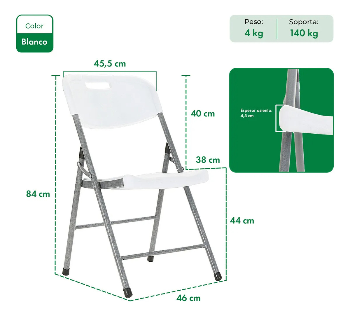 Presentamos el Combo X2 Sillas de Plástico Plegable Paris, la opción ideal para enriquecer tus espacios tanto interiores como exteriores. Con una altura total de 84 cm y un ancho de 46 cm, estas sillas son perfectas para cualquier evento, desde reuniones familiares hasta ocasiones especiales. Su diseño blanco moderno no solo aporta frescura, sino que también se integra a la perfección en cualquier decoración. Están elaboradas con materiales sostenibles: el asiento de polipropileno brinda comodidad y durabilidad, mientras que la estructura de acero asegura una estabilidad superior, soportando hasta 150 kg. Gracias a su capacidad de ser apilables y su fácil traslado, optimizarás tu espacio sin esfuerzo. Además, son resistentes a los rayos UV y fáciles de limpiar, lo que las convierte en una opción práctica y funcional para el uso diario. Ideal para el jardín, catering y más. ¡Cambia tu forma de disfrutar al aire libre con estilo y comodidad!